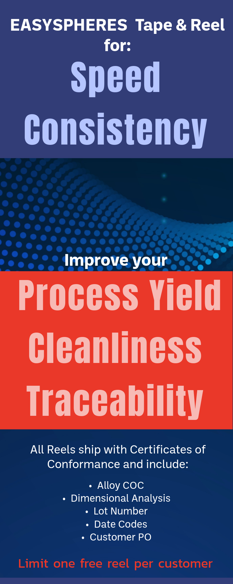 Your Sample Reel will be a 7" Reel containing the sphere alloy and diameter you selected above.